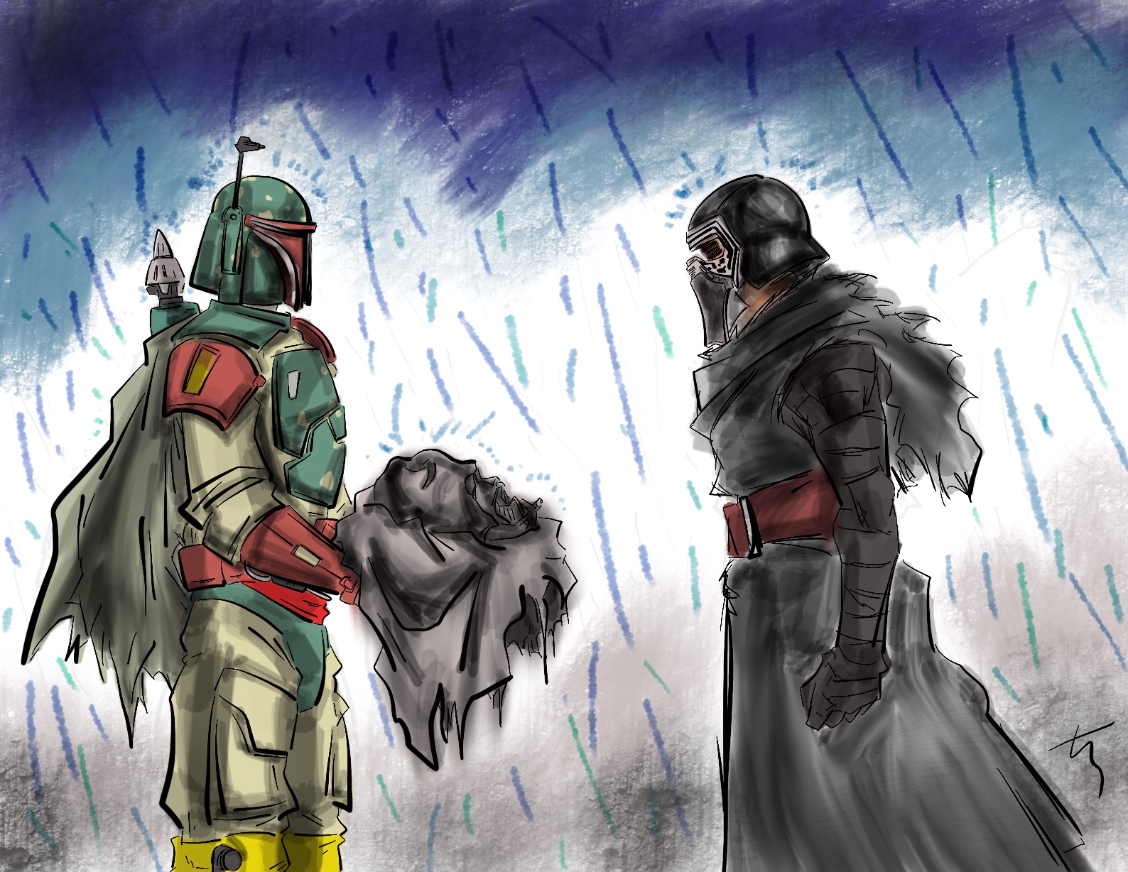 외할아버지의 헬멧을 바운티 헌터에게 취득하는 카일로 렌. 상상 컷입니다.