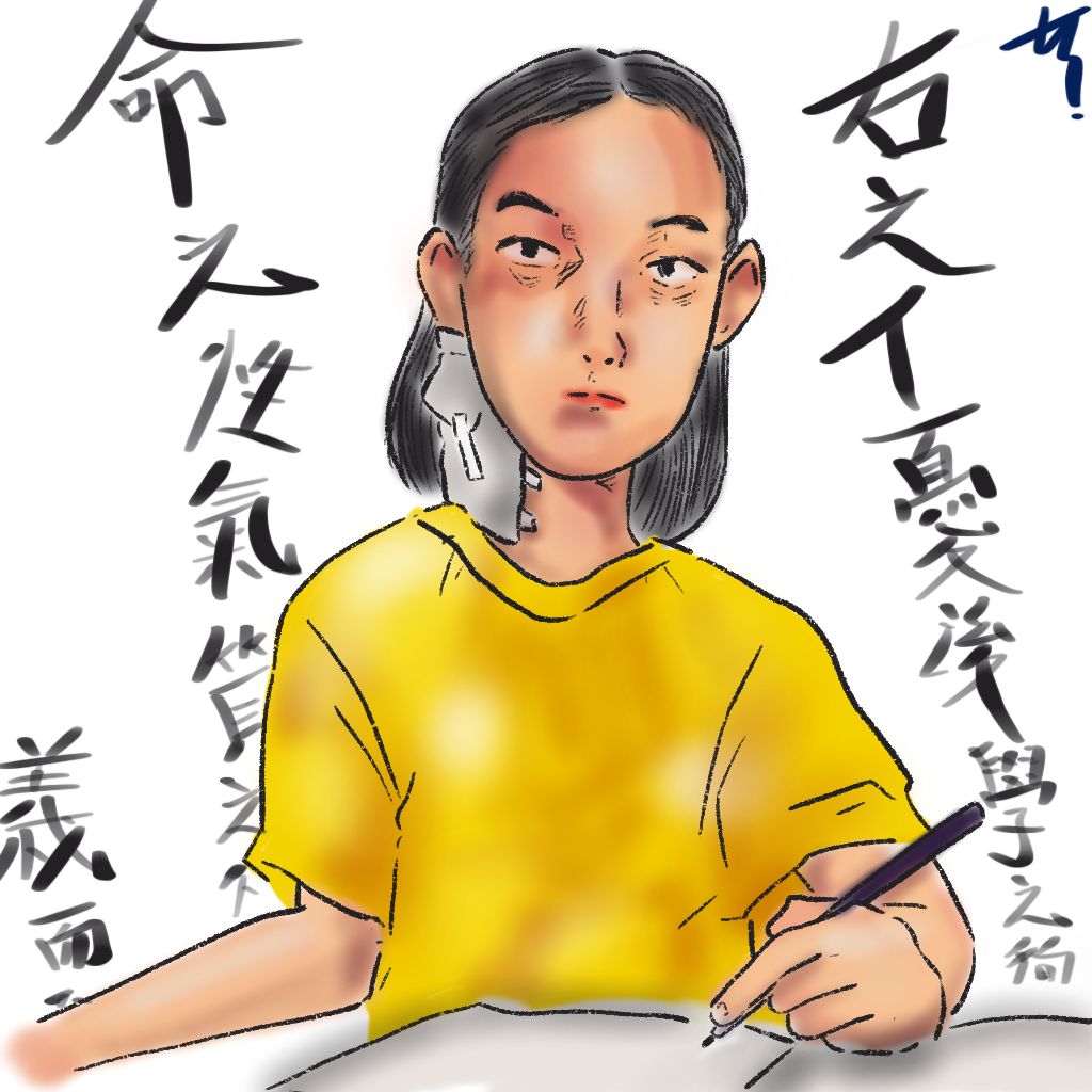 [벌새]를 보고 받은 인상을 그렸어요. 안 닮았지만 어떤 아이인지가 중요한거 같진 않아요.