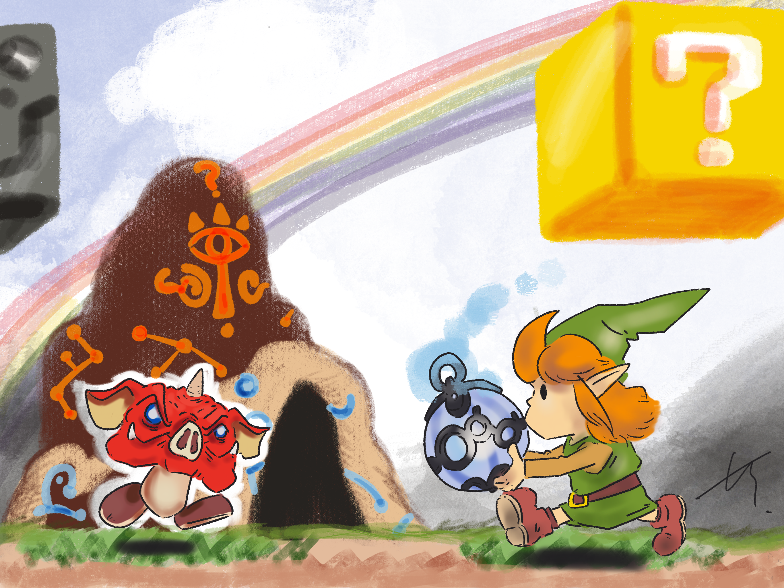 야생의 숨결의 링크를 마리오 풍 세계관에 넣었는데, 정작 꿈꾸는 섬 판 링크에게 이런 마리오 풍 스테이지가 있더군요 ㅎㅎ
