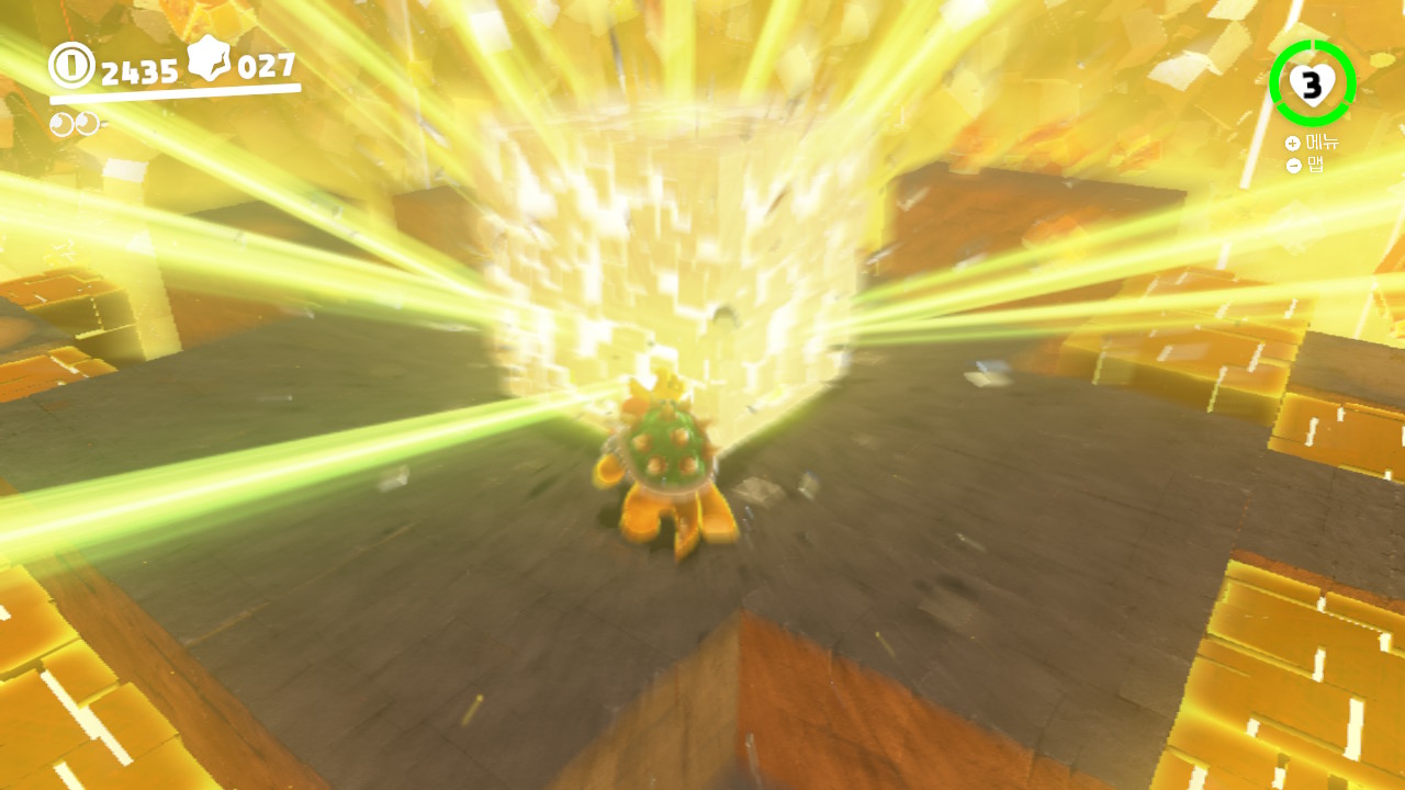 이 [슈퍼 마리오 오디세이]의 탄생을 만든 것은 [슈퍼 마리오 64]인 것은 거의 확실하지만, 오늘 1차 엔딩을 보고 뭉클하게 느낀 것은 네모 형태의 오브젝트 / 거대한 도트라는 게임 원형에 대한 향수와 헌정이었다. 계승일 수도 있고 현재 개발진들이 마리오라는 시리즈(자체를 넘어 아예 별도의 장르라고 칭해도 될...) 안에서 구 시대와 신 시대를 통해 잊지 않고 실현하는 본질 자체가 아닐까.