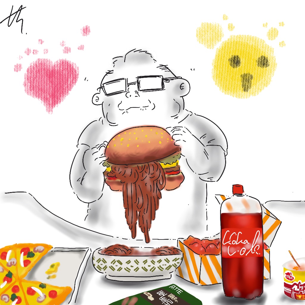 먹방 하는 나. 메인 음식이 너무 맛없게 보이는군요 ㅎㅎ