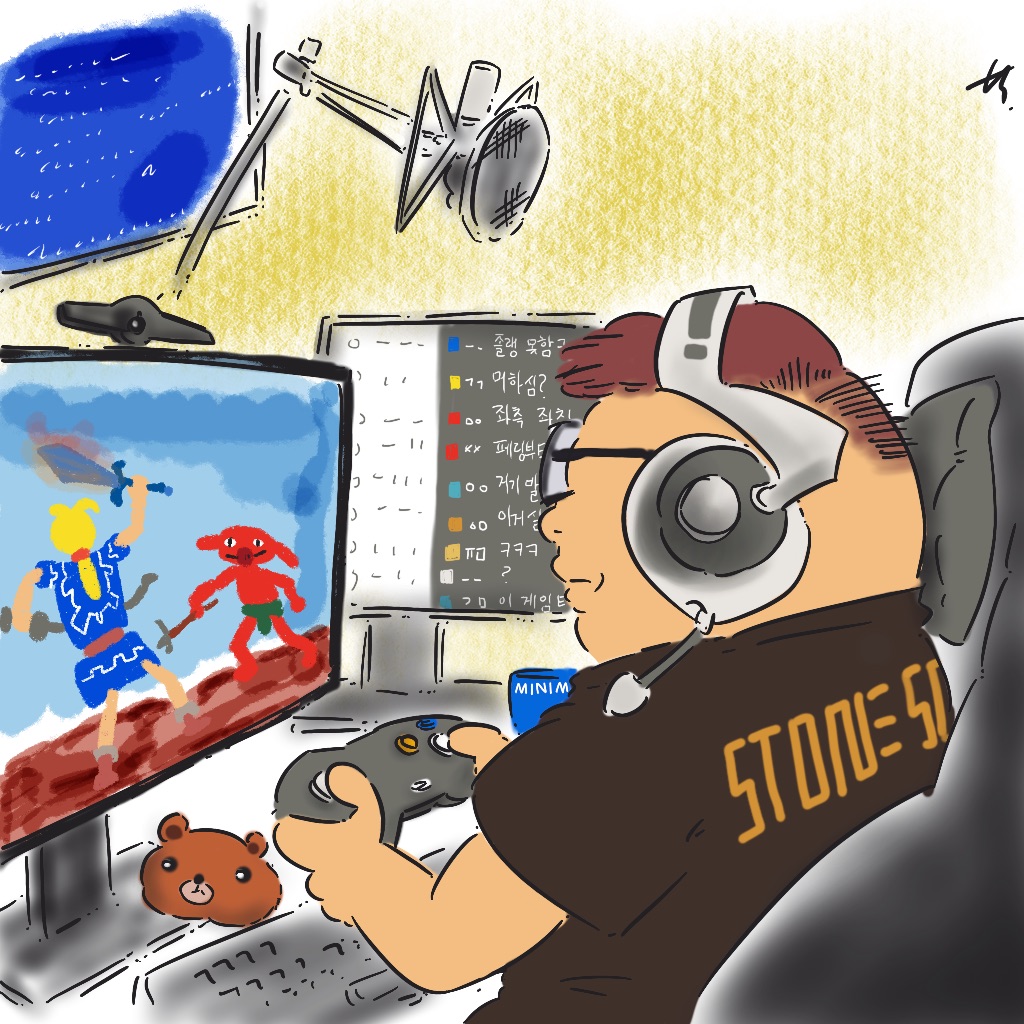 작년, 현실과 다른 나를 종종 그린 모양입니다. 겜방 하는 나.