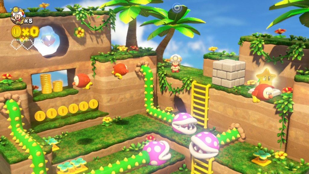 캡틴 토드 : 트레저 트래커(국내에선 [전진! 키노피오 대장]이라는 명칭으로 제공)는 키노피오라는 이름으로 익숙한, 마리오 월드 세계관의 버섯 왕국 일원의 단독 타이틀이다. 적지 않은 유저들은 이 친구를 최근까지도 [슈퍼 마리오 3D 월드] 을 비롯해 [슈퍼 마리오 메이커 2] 등을 통해 친숙하게 대면했을 것이다. 최근 닌텐도 온라인의 미국 계정을 통한 2주에 가깝게 트라이얼 로 제공되었는데, 적극적으로 진도는 못 밟았으나 그래도 적절하게 맛을 볼 수 있었다.