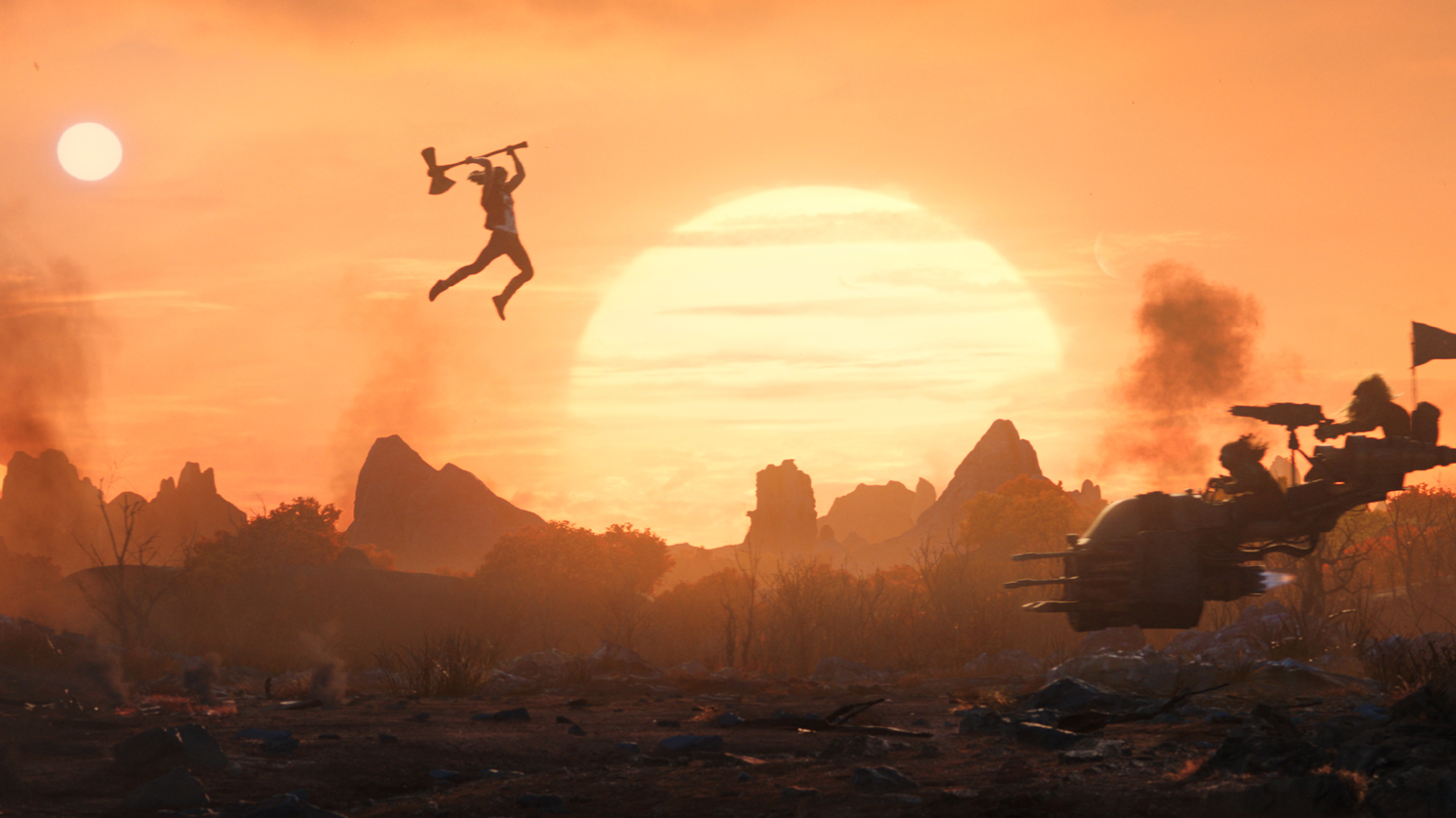 건즈 앤 로지스의 <Appetite for Destion> 음반의 welcome to the jungle, paraside city, sweet child O’ mine을 비롯 <use your illusion pt.1> 음반의 november rain까지 꾹꾹 눌려 재생된다. 여기에 하임달의 아들이 아예 자신을 액슬이라고 칭하는 대목까지 와이티티 감독의 헤어 메탈 시대 넘버에 대한 애정 표현은 [피스메이커]의 연출자 제인스 건에 못지않은 농도를 보여준다. 여기에 엔야의 노래까지 본인 기준에선 재치 있는 향수 취향의 피력 같긴 한데, 이런 요소들이 모두 유효하진 않다. 신들의 영역에 놓인 제우스 캐릭터(러셀 크로우 분)의 묘사가 보여주는 가벼움은 동의하기 힘든 대목이었고, 홀로 신성이라는 요소에 반기를 들고 고뇌하는 고르(크리스찬 베일 분)의 존재가 작품 전체를 설득력 있게 움직이는 존재라고 하기엔 무리수가 있었다.